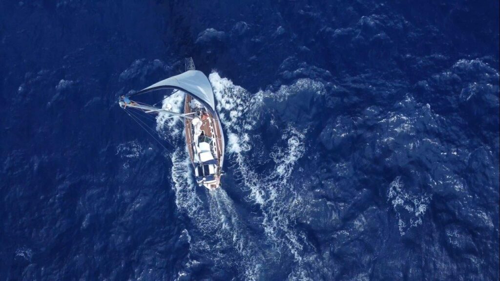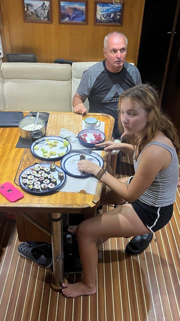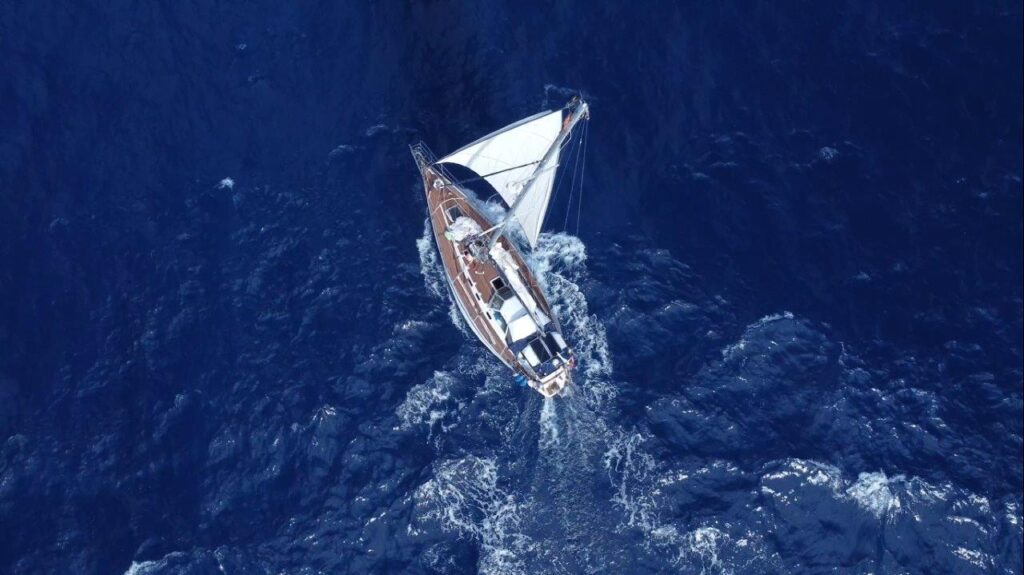 Tieto prekrásne zábery s dronom robil František Švec, ktorý nielen výborne navarí, ale je aj zrastený s ovládačom dronu. Pravda, pristáť s ním na húpajúcu a pohybujúcu sa loď je iná liga, ale aj to sme vyriešili.