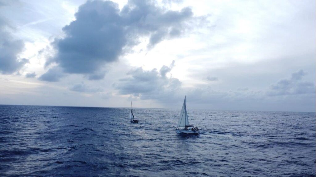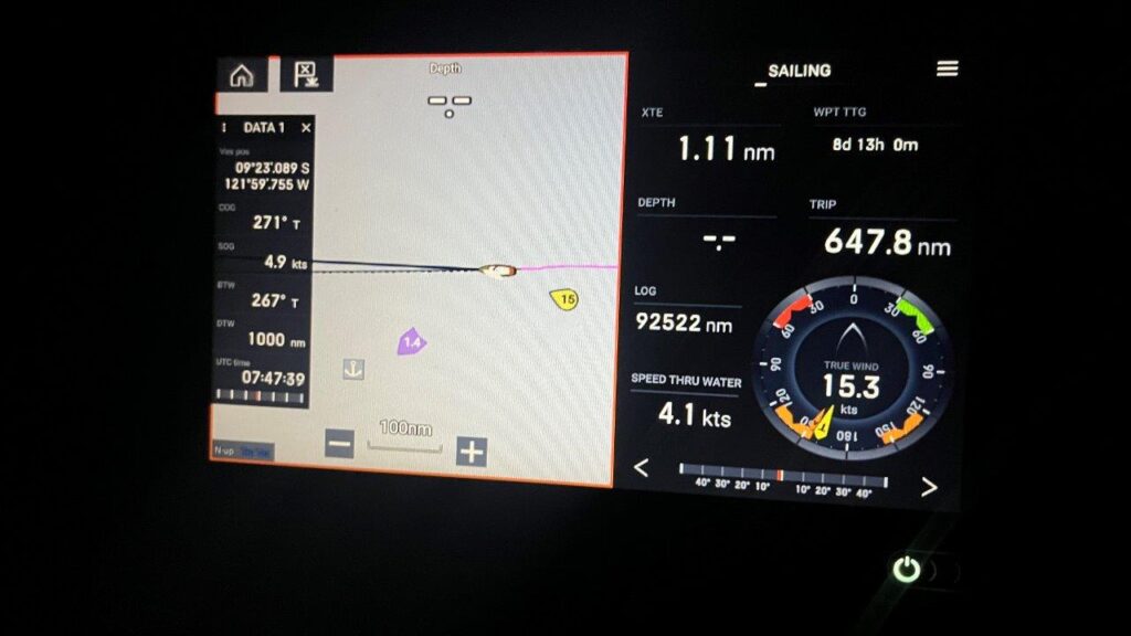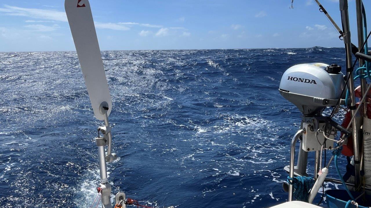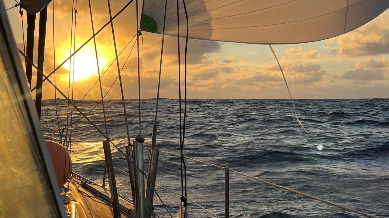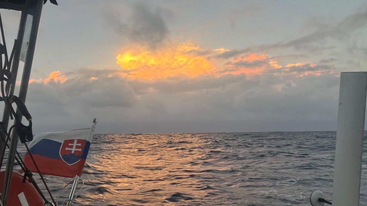 Zlatý Atlantik… Tam sme dali prednú plachtu, Windpilot a 12 dní bol viac-menej pokoj. Tu je to prvýkrát počas mojich plavieb, čo sa viac používal elektrický autopilot a nie Windpilot. Dôvodov je hneď viacero. Mali sme často veľké mraky, ktoré spôsobili zmenu a silu vetra. Sila vetra zmenila zdanlivý vietor, loď následne smer. Príchodom veľkého mraku vietor stratil na sile a smere a plachta, dostávajúc sa za os lode, pekne plieskala. Cez deň sa to dalo korigovať, ale v noci, keď bolo treba konať pružne, sme radšej mali zapnutý autopilot. V polovici plavby sme z toho boli už dosť unavení a Windpilot sme sa ani nepokúsili zapojiť. To zatiaľ vravím iba o vetre. Zmena smeru a sily vetra samozrejme nepresvedčila oceán, aby tomu okamžite prispôsobil vlny. Predná plachta gena nepekne plieskala a jediným riešením bol genaker alebo motorsailing. Keďže máme tých genakrov viac veľkostí, snažili sme sa prispôsobovať výber stavu mora a predpovedi počasia. A ono to celkom fungovalo. Ako inak, pri slabom vetre bol opäť spoľahlivejší kormidelník autopilot.