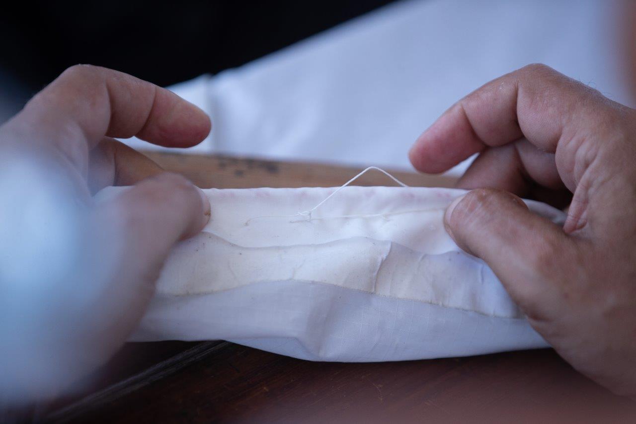 Pri druhom raze, kedy nám padla „Biela mulica“ do vody, odpáralo sa uchytenie lanka na spodnom leme, ako to vidieť na fotke.
