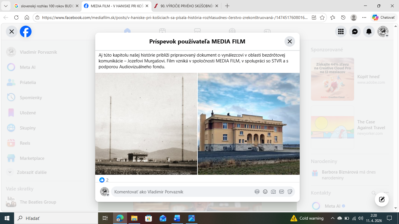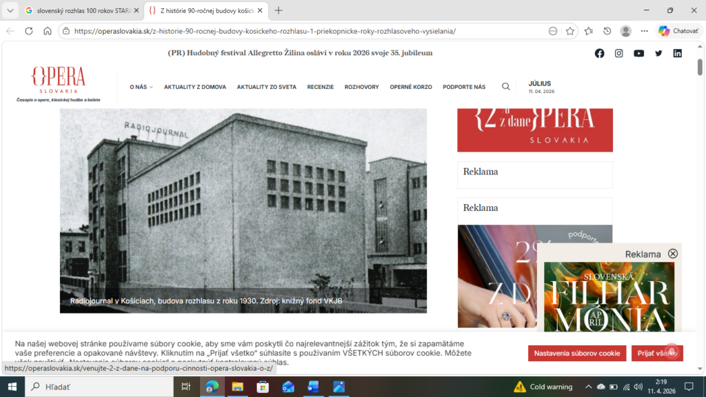 Aby som nepoplietol nasledujúce udalosti, krátko odbočím. Ešte v Karibskom mori ma oslovil redaktor Rádia Regina Východ, Ján Kondor. V Košiciach sa blížila oslava stého výročia prvého vysielania Slovenského rozhlasu. Na obrázku je budova, v ktorej sa tento historický moment udial.