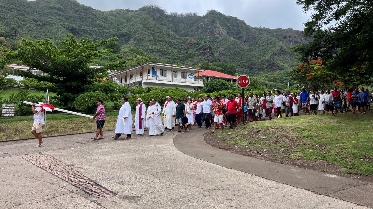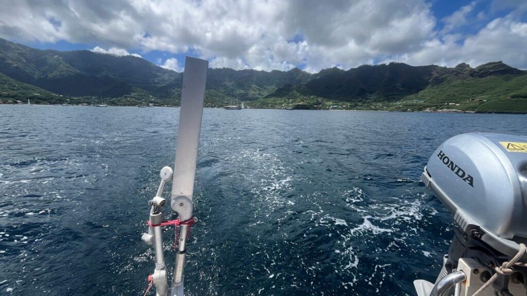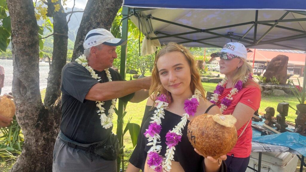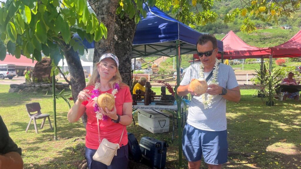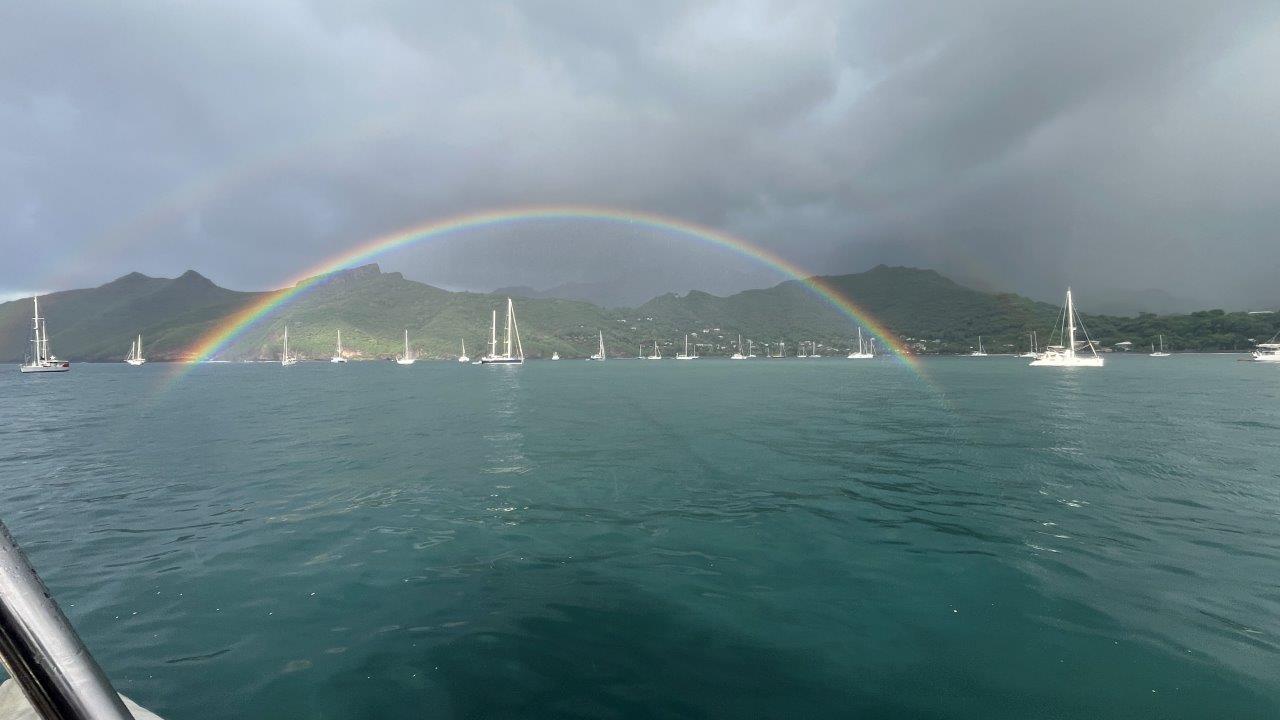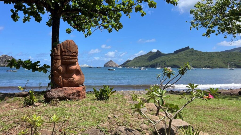 Dôvod, prečo sme na Hiva Oa strávili iba necelé tri dni a dve noci, bol, že sme chceli byť na privítacom ceremoniáli pre všetkých členov WCC, ktorý sa konal v zátoke a mestečku Taiohae na Nuku Hiva prvý aprílový deň. Išli sme na noc a 95 námorných míľ, ktoré nás delili od novej destinácie, sme ukončili 1. apríla spustením kotvy v zátoke medzi mnohými ostatnými jachtármi, ktorých je tu neúrekom. Našťastie, zátoka je obrovská, bezpečná a kotva na pieskovom dne drží spoľahlivo.