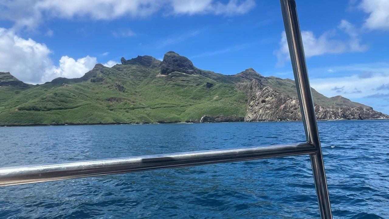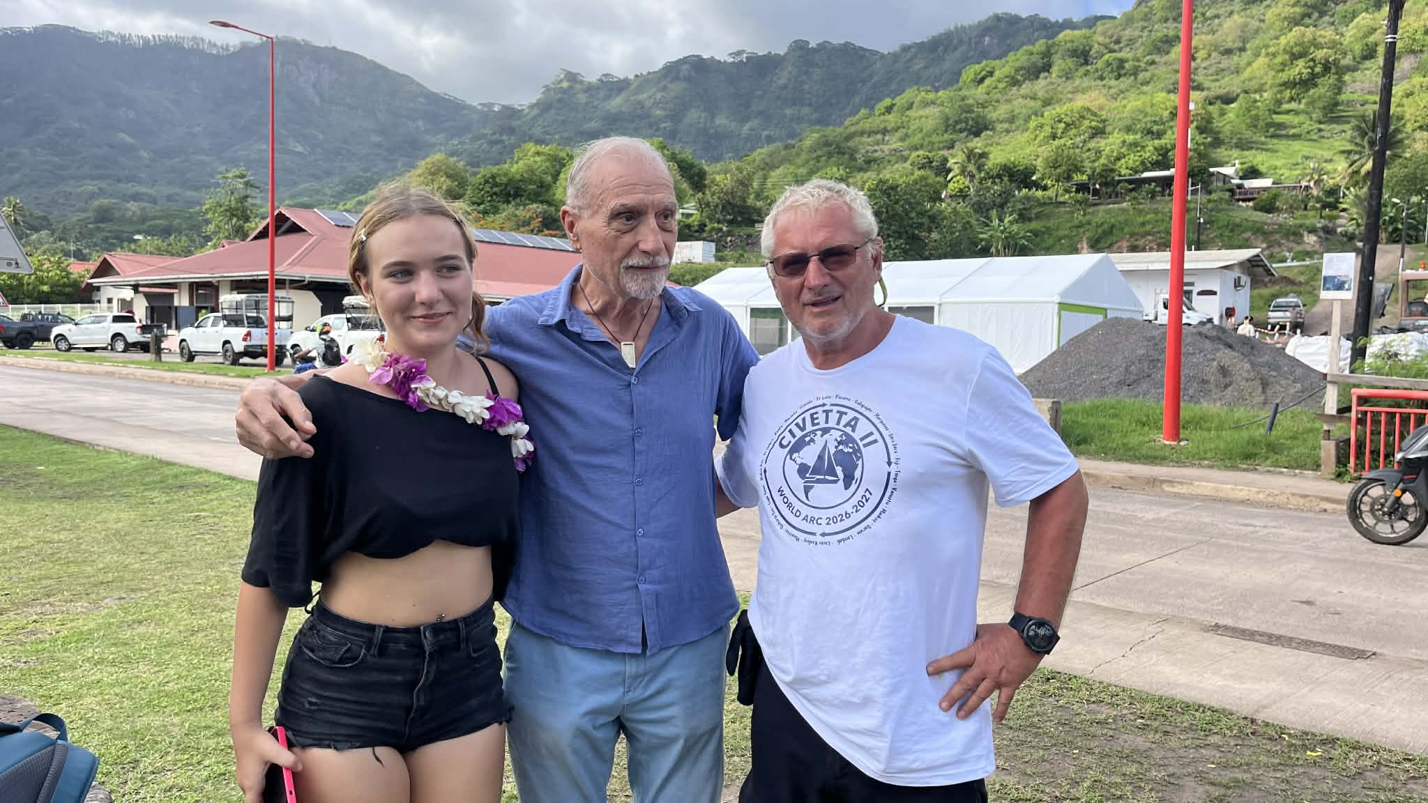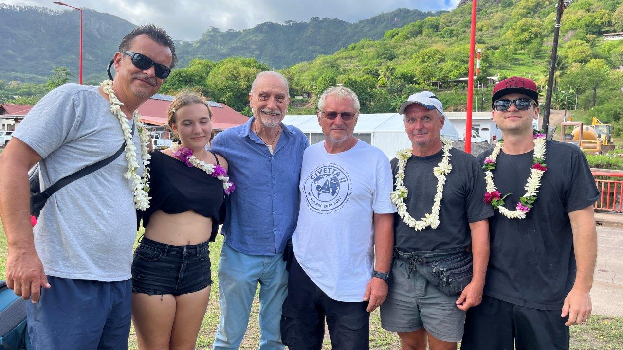 Šťastie v nešťastí. Lietadlo mešká s príletom asi polhodinu, teda aj odlet. Z Tahiti v ňom sedí aj Braňo Zemanovič, ktorý sa pripojí k posádke až do Tahiti. Dobre to všetko dopadlo. Stihli sme, pred malým letiskom stoja obaja previnilci. Chvíľka napätia, keď kontrolujem, či som vzal správny pas, všetko ok. Stíhame hambáča v miestnom občerstvovacom zariadení, opäť sa lúčime s Brankom a Františkom. Braňo ušetril za taxík, o dve hodiny sme na lodi. Aspoň si stíham urobiť fotku zátoky z kopca a poobede stihnúť krížovú cestu.