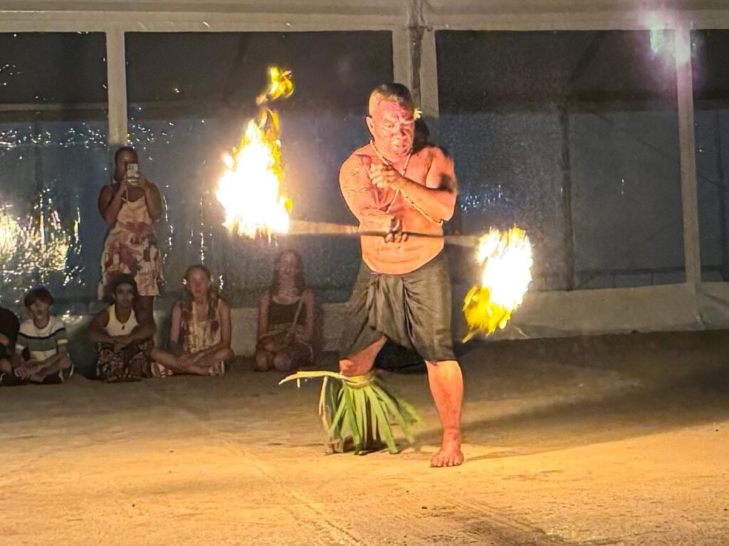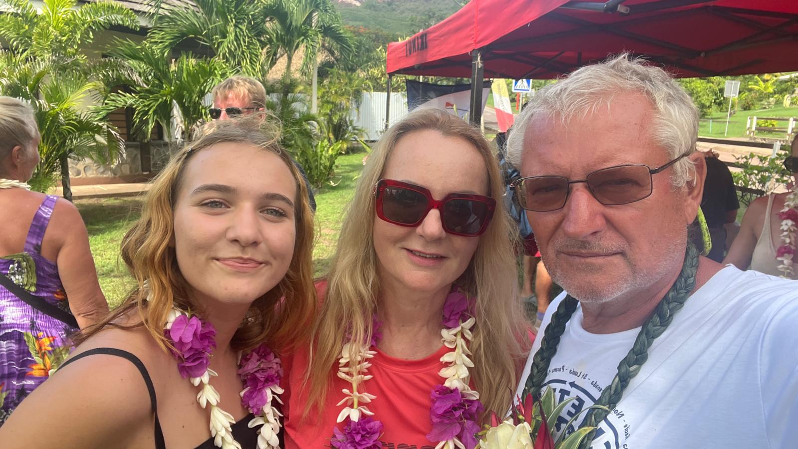 Oslava začala o druhej popoludní. Rovnako ako pred dvanástimi rokmi, aj dnes sme boli ovenčení, obdarovaní kokosovým orechom s chladenou kokosovou vodou a občerstvovali sme sa čerstvým tropickým ovocím. Zúčastnila sa aj Dagmarka Psalmanová, priateľka a jachtárka, ktorá prišla na oslavu rovno z letiska a jej kufry sa počas venčenia povaľovali pod neďalekým chlebovníkom.