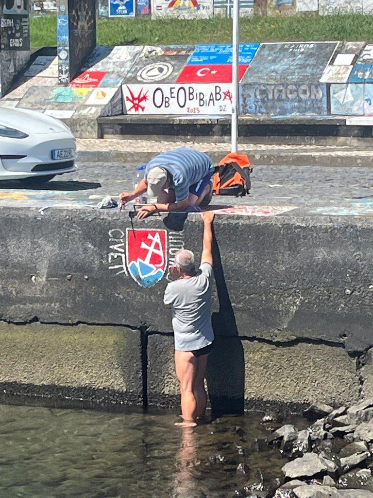 Keď sme sa vrátili k lodi, mali sme susedov. Tak ako v Grónsku, aj na Azoroch je bežné uväzovať sa k boku lode. Niekedy sú takto vedľa seba aj piati susedia. Ak si dajú všetci laná k brehu, je to celkom solídna motanica. A to keď odchádza prvý a ostatní sa mu uvoľňujú a následne sa priväzujú, to môže byť aj nádherne strávený poldeň.