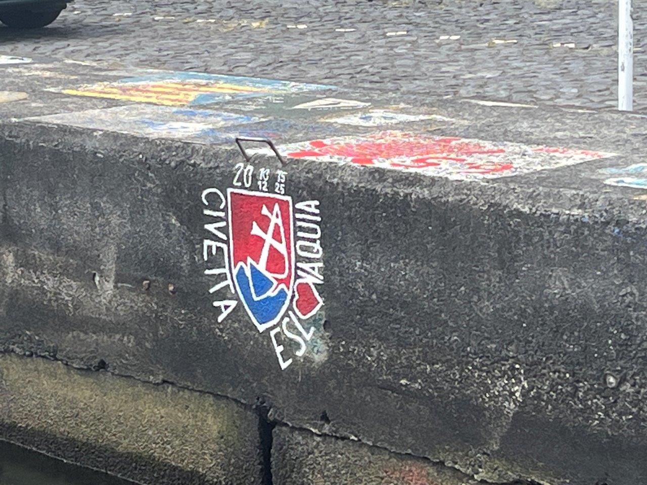 Ivan dostal nápad opraviť maľbu, ktorú Pali Prepiak namaľoval v roku 2010. Nakúpili farby a s Peťom sa dali do roboty. Každý deň trošku, nech to má čas vyschnúť. Pridali sme ďalšie roky, kedy sme sem prišli.