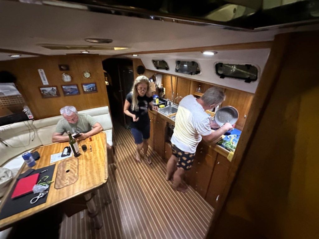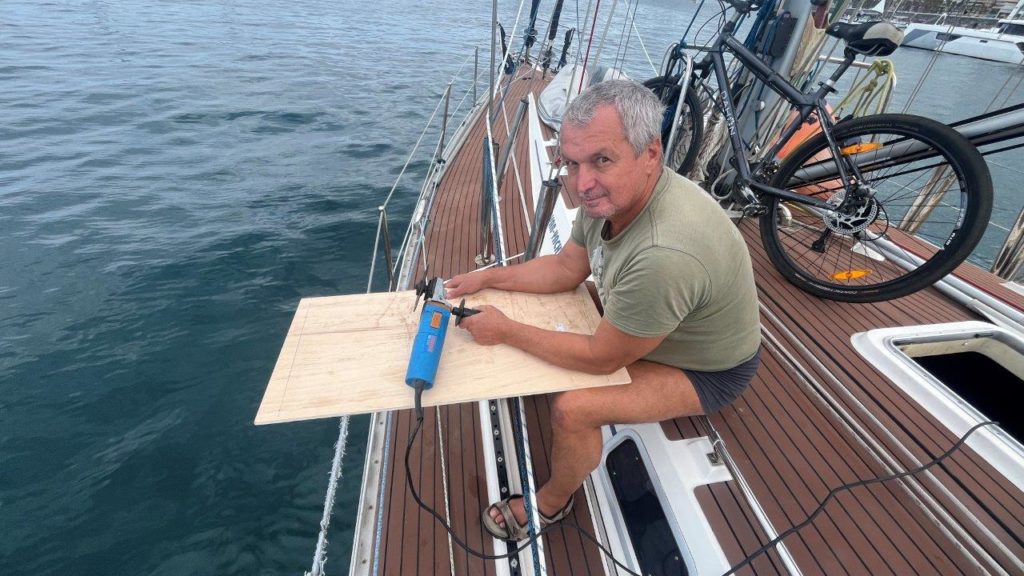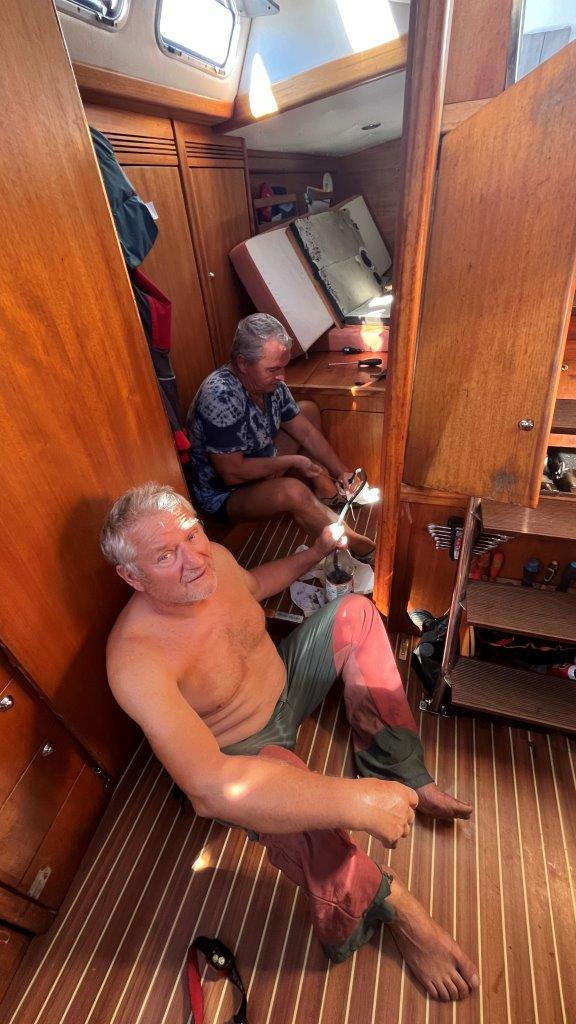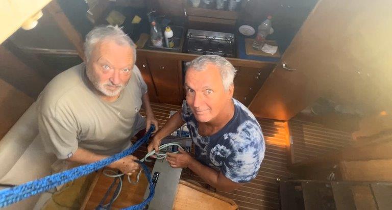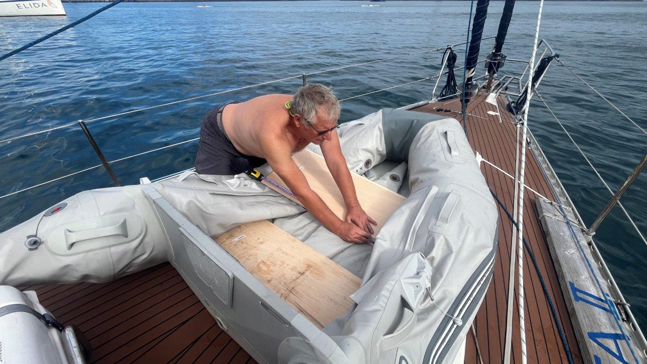 Účelom návštevy je kontrola bezpečnostného vybavenia lode (safety equipment). Prebehlo to hladko, zopár drobností dokúpim. Posledné tri dni sme boli opäť na kotve. Zuzka sa rozlúčila, ostali sme traja, s Peťom a Lubom. Bolo treba urobiť ešte dve veci. Keď som bral gumák z Trintelly na Civettu, opomenul som vziať nafukovaciu podlahu. A to naozaj chýba. Autom, ktoré sme si požičali na nákup proviantu, sme sa doviezli k miestnemu „OBI“, nakúpili dosky a vyrobili nové dno. Chcelo to namerať, odpíliť, nalakovať a voalá…