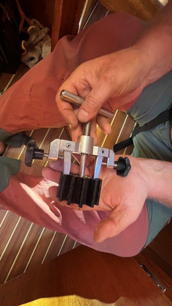 Ďalší deň 12. novembra prišiel na rad motor. Nakopilo sa hneď viac vecí. Menil som Impeler na vodnej pumpe a prístup k tomu je veľmi zlý. Ale nová vecička, nástroj na vyberanie starého kusa, sa plne osvedčila.