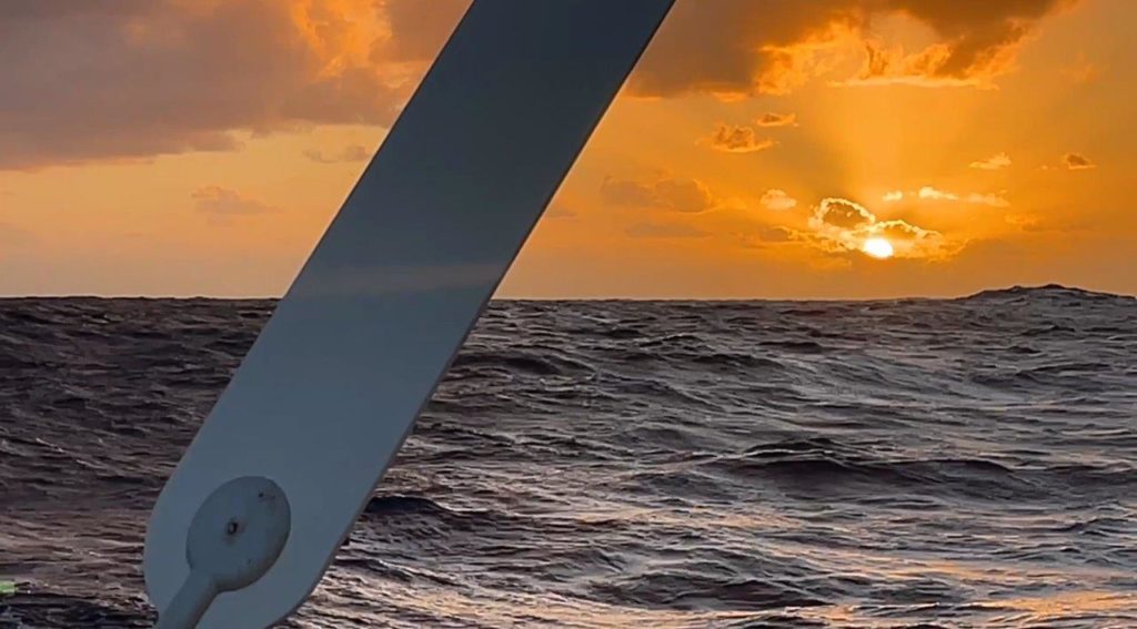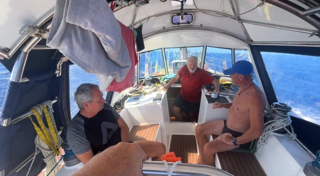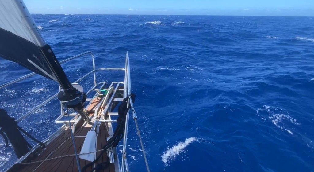 Opäť máme sobotu, tá dnešná je 13. decembra 2025. Ubehli dva týždne, čo sme sa odviazali v maríne Mindelo na kapverdskom ostrove Sao Vicente. Plavba je naďalej pohodová, vietor nám praje. Posledné tri dni trochu pridulo, 20 uzlov vystriedalo 25 – 30. Ale pohoda, skrátili sme prednú plachtu a snažíme sa čo najviac plachtiť so zadným vetrom, vtedy nádherne surfujeme na vlnách.