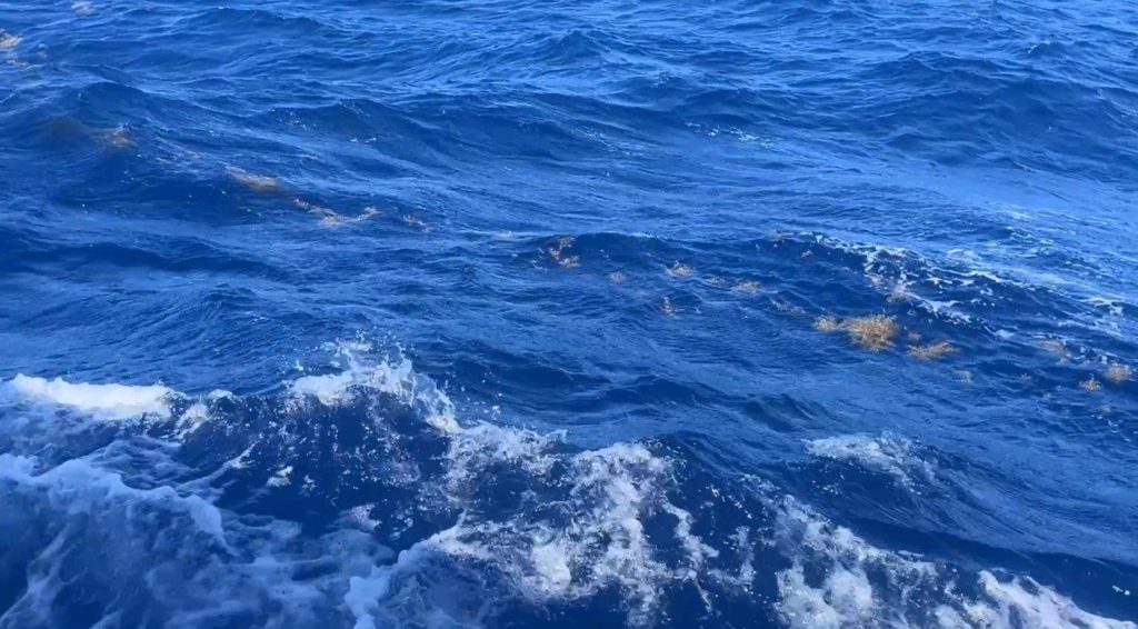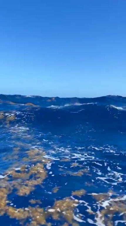 Aj keď niekoľko sto míľ od Martiniku, vytiahli sme ho v hodine dvanástej. Na hladine sa totiž opäť začal objavovať fenomén z aprílovej plavby v týchto miestach, morské riasy.