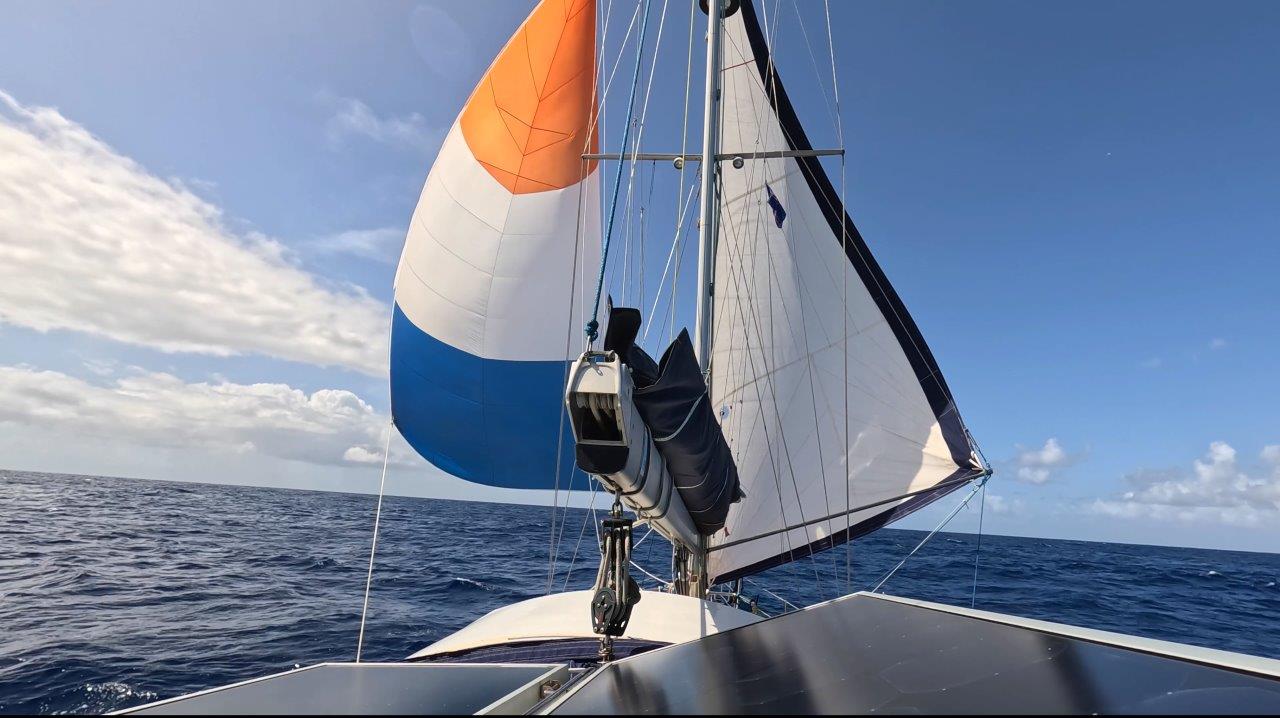 Opäť máme sobotu, tá dnešná je 13. decembra 2025. Ubehli dva týždne, čo sme sa odviazali v maríne Mindelo na kapverdskom ostrove Sao Vicente. Plavba je naďalej pohodová, vietor nám praje. Posledné tri dni trochu pridulo, 20 uzlov vystriedalo 25 – 30. Ale pohoda, skrátili sme prednú plachtu a snažíme sa čo najviac plachtiť so zadným vetrom, vtedy nádherne surfujeme na vlnách.