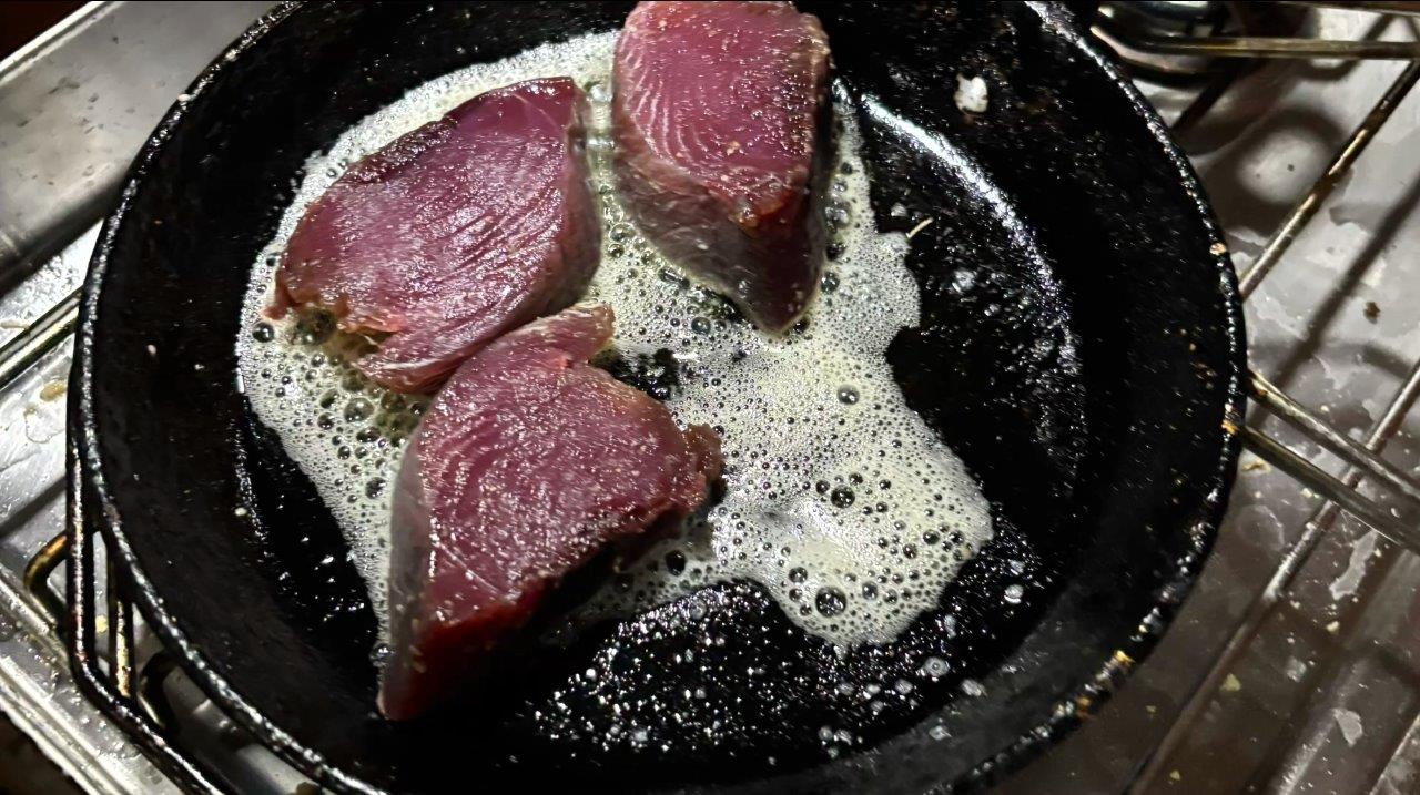 Vytiahli sme aj prekrásneho tuniaka, vydržal nám na dve večere. A tie stejky…
